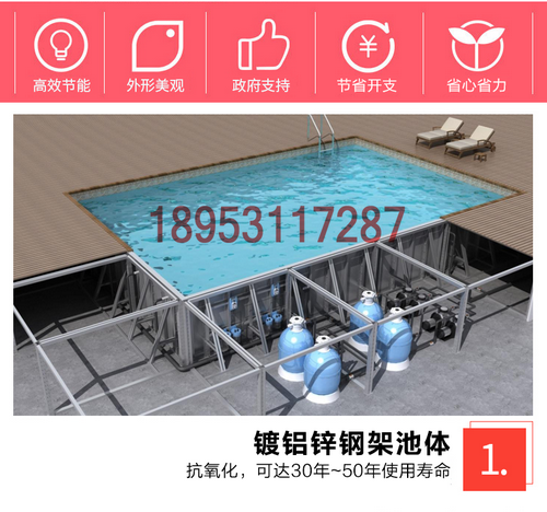 咸安钢结构游泳池可拆装室内恒温游泳馆户外拼装式游泳池